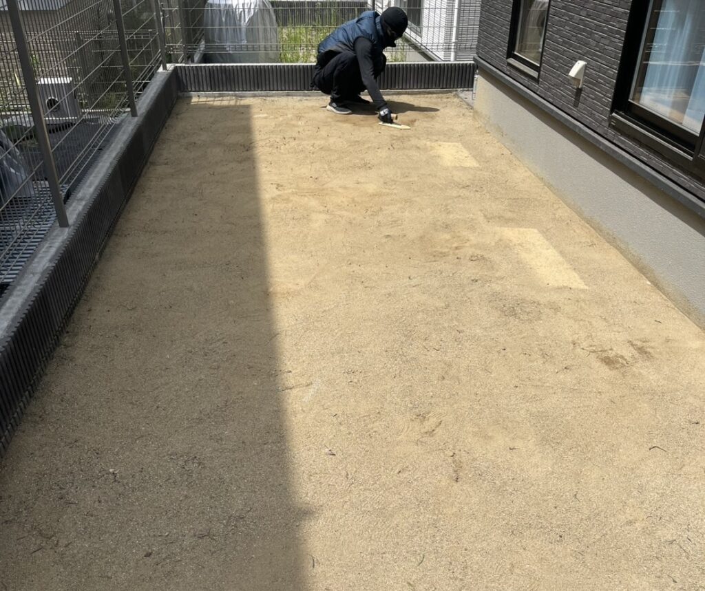 人工芝だけ敷いても、下から雑草が出てくるケースがあるため、根本から対策します。