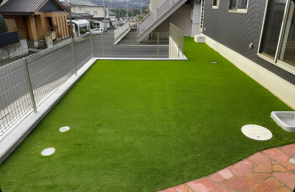 人工芝を入れることで、草むしりの頻度を減らしやすいです。