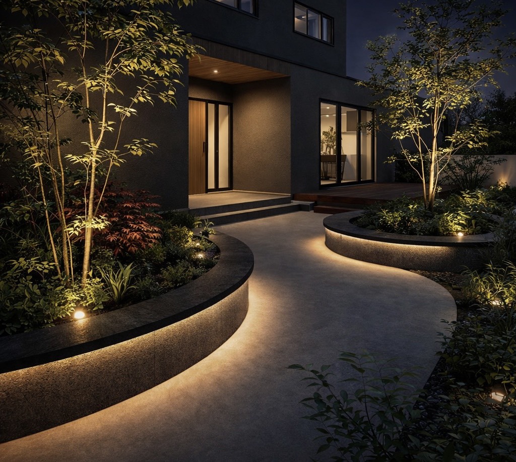 しかし、照明は眩しすぎると逆効果。足元が自然に見える配置が大事です!
