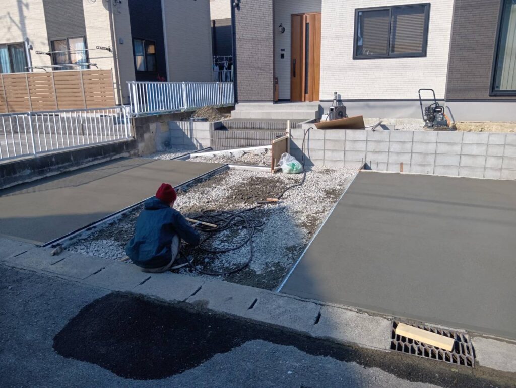土間コンクリート打設の様子|駐車場・外構を長持ちさせるポイント【仙台】