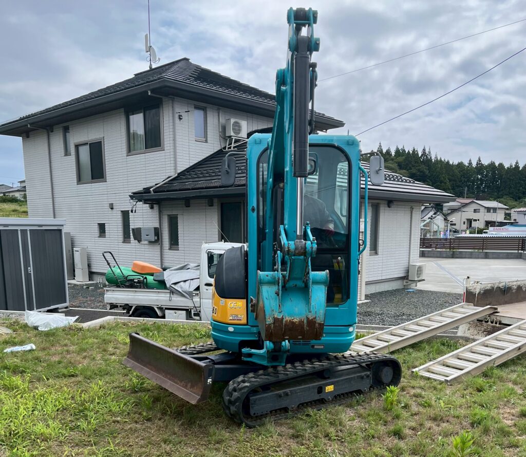 今回の施工では、小型ユンボ(ミニショベル)を使用しています。